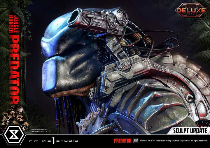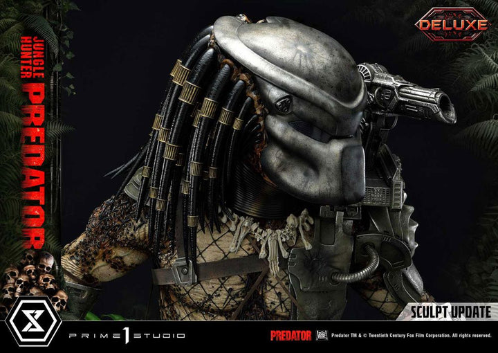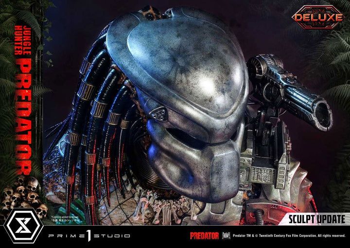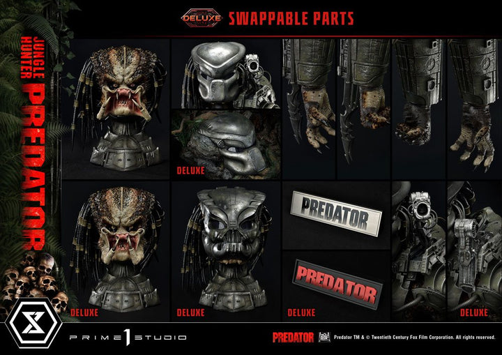Prime 1 Studio proudly presents a definitive masterwork in the Museum Masterline Series: the 1/3 scale MMPR-01DXS: Jungle Hunter Predator Deluxe Bonus Version from Predator (1987)! Today, Predator is a beloved film and heralded as a cult classic of the action genre. But when it was released in 1987, people were not prepared for the groundbreaking action scenes, visceral effects and what is arguably one of the most compelling alien creatures designs ever made! The importance of this statue simply cannot be overstated. The last 1/3 scale Jungle Hunter Predator statue came out 12 years ago. And this magnificent piece is a direct homage to that classic but turned way up to 11! The Predator's skin comes alive in this intricately detailed masterpiece of polystone and mixed materials. Dare to take a closer look at his multitude of features, all expertly orchestrated by Prime 1 Studio. The Predator is ready to eviscerate his prey with the wrist-mounted double blades on his right arm. He comes with two sets of open and closed fists, with extended and retracted blades. Each of his "dreadlocks" are meticulously placed. Instead of merely sculpting it, the netting all over his body is real material. And our craftsmen have synced perfectly together to render the battle-worn look of his masks and other armor pieces through sculpted damage and carefully weathered metal. We have outfitted the Jungle Hunter Predator Deluxe Bonus Version with LED Illumination as befits the technological excellence of this apex hunter: his Bio-Mask, shoulder-mounted Plasma Cannon, and his wrist-mounted control panel with hinged cover, all feature LEDs. We have included four (4) different swappable heads with this statue to extend its narrative impact. The first swappable head features his film-accurate Bio Mask, complete with LED-illuminated laser targeting array. The next swappable head is the fully revealed, unmasked, roaring Predator with his mandibles spread open. If you want an even more gruesome Predator, display a third swappable head in all its ugly mother#$%@&ing glory. And the last swappable head is a callback to the original design of the Bio Mask...the Gort Bio Mask...which is sure to be a favorite with the elite Easter Egg crowd! To flesh out these incredible Deluxe Version features, the Jungle Hunter Predator also includes a swappable Plasma Canon in the deactivated position, and two different title plaque styles! The Deluxe Bonus features, which is available at the Prime 1 Studio Official Store and limited time to others, includes cult-status Easter Egg pieces like Mac's Skull, Jim Hopper's Dog Tag, and bonus hands! Standing majestically at over 35 inches tall, the Jungle Hunter Predator reveals itself as an imposing, otherworldly peril intent on relentlessly hunting its prey. In this pivotal moment, where the Jungle Hunter Predator reveals his true form to Dutch (the main protagonist of the film), the skilled artisans at Prime 1 Studio have seated the Predator's Bio Mask in the gnarled roots of a tree. In the film, the Predator takes off his Bio-Mask and drops it in the putrid, leech-infested water of the jungle, which we have faithfully recreated here with translucent resin and detailed inclusions, for a convincing watery effect. Any discerning connoisseur of the Predator franchise will immediately recognize this statue as an instant legendary classic. So don't wait on getting the Jungle Hunter Predator...his self-destruct sequence is counting down! 3...2...1... Be ready for our next companion piece, which was teased in our 'Next Level Showcase 2.' Stay tuned and get excited for the 1/3 City Hunter Predator from the film sequel 'Predator 2!' [Product Specifications] - Statue Size approx. 35 inches tall [H:90cm W:71cm D:68cm] - Predator: Jungle themed Base with watery effects - LED-Illuminated on Bio-Mask, Plasma Cannon and Wrist Control Panel - Openable Wrist Control Panel with hinged cover - Placeable Predator's "Details" or "Props" Bio Mask on the base - Four (4) Swappable heads - Five (5) Alternate Portraits ("Details" Bio Mask, "Props" Bio-Mask, Unmasked Classic Portrait, Unmasked Roaring Portrait and Gort Bio-Mask) - "Props" Bio-Mask with Mirror Effect Visor - Three (3) Display stand for the swappable heads - Three (3) Wristblades (Retracted, Semi-Retracted and Extended) - Two (2) Plasma Cannon (Activated and Deactivated position) - One (1) Right-hand clutching Billy's spine with skull - One (1) Pair of Open Hands - One (1) Pair of Clenched Fist - Two (2) Title Plaques - One (1) Pair of Bonus Closed Hands [BONUS PART] - One (1) Bonus Prehensible Extended Wristblades [BONUS PART] - Moveable Bonus Parts (Mac Skull and Jim Hopper Dog Tag) [BONUS PART] Limited to 999 pieces.