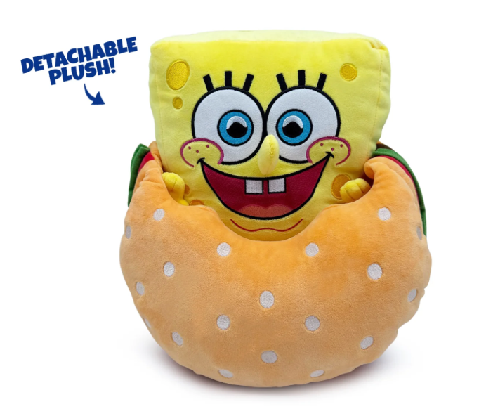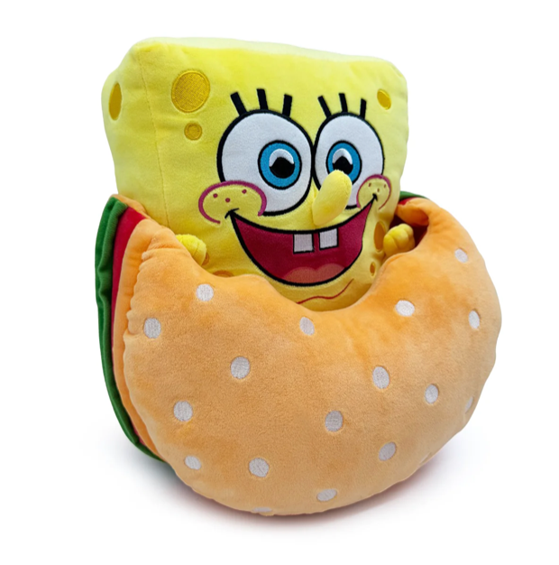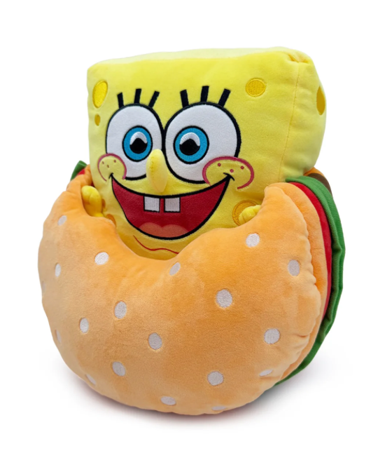 I always knew the secret formula was.... love! Spongebob's come back to Youtooz to show us exactly how much love he can cook up with a brand new plush! At 9 inches tall, Spongebob pokes his head out happily from a large bite mark in the top of a delicious Krabby Patty that's filled with tomato, lettuce meat and... SpongeBob, who is removable and wears his classic brown shorts, white shirt, red tie, black shoes. This plush is packed to the seams with 100% PP cotton and is made of the softest minky material, perfect for cuddling or flipping burgers with!
