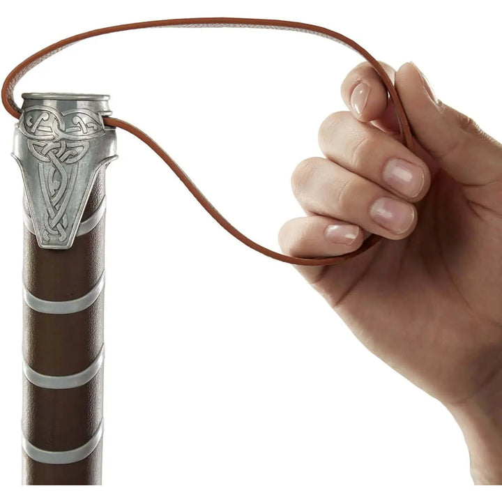 This 19.75-Inch Mjolnir Replica Accurately Depicts Thor's Signature Weapon, Featuring Authentic Wrist Strap And Pommel. Additionally, This Product Includes A Voice-Activated Light-Up Feature (Which Reveals The Symbol Of Odin) And Action Sound Effects.