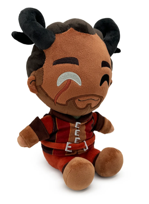 Wyll has hunted his prey straight into Youtooz! Surely he’ll be victorious and walk away with the most notable trophy of all, a Youtooz plush! Sitting at 9 inches tall with a pair of thick black curling horns stretching out from his forehead as dark hair is pulled into a small ponytail above his nape, a curving scar runs from his grey left eye down through a light beard as he flashes a calm smile. Wearing an outfit perfect for any fight, he wears a tight maroon and brown tunic with silver buckles at the front and thick cuffs on the sleeves along with light brown pants and large boots. This plush is packed to the seams with 100% PP cotton and is made of a mixture of minky, polyester and metal materials, absolutely perfect for cuddling or hunting with!