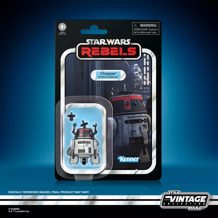 Celebrate the legacy of Star Wars with premium vehicles, playsets, and action figures from Star Wars The Vintage Collection. (Additional products each sold separately. Subject to availability.) Based on Chopper (C1-10P) from Star Wars Rebels, this 3.75-inch-scale figure makes a great addition to any fan’s collection. Inspired by the original line, these collectibles feature premium detail and design across product and packaging, as well as collector-grade deco that fans have come to know and love. May the Force be with you!