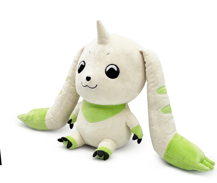 Davis and Henry are both away, so we here at Youtooz are keeping an eye on Terriermon and just had to turn him into a plush! Sitting on his bum with his little legs kicked forward at 9 inches tall, his light beige body is broken up by green feet, hands, neckerchief and the tips of his extra long ears. With a smile resting on his face below a small black nose and shining eyes, one horn extends from his forehead. This plush is packed to the seams with 100% PP cotton and is made of the softest minky material, perfect for cuddling or exploring the digitalworld with!