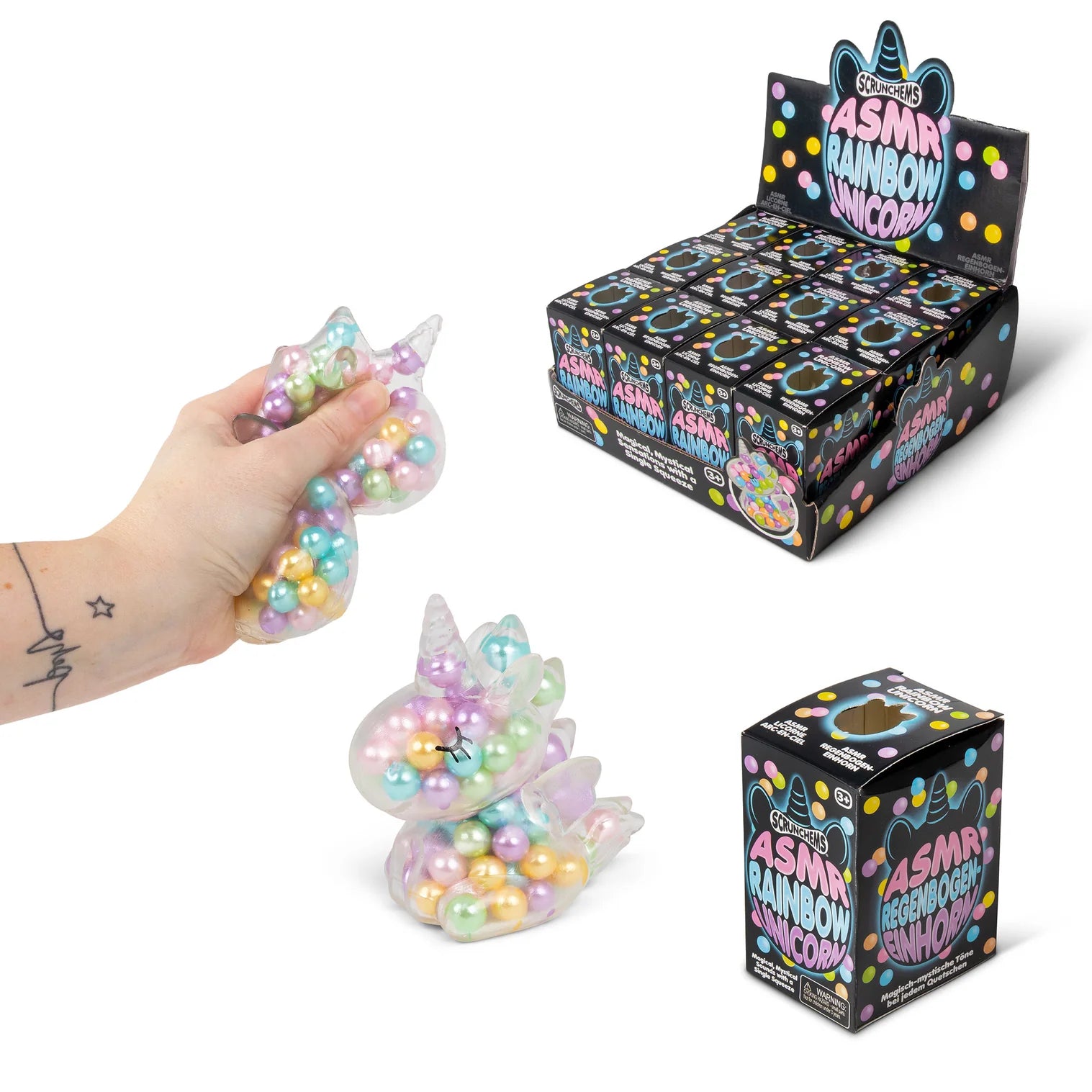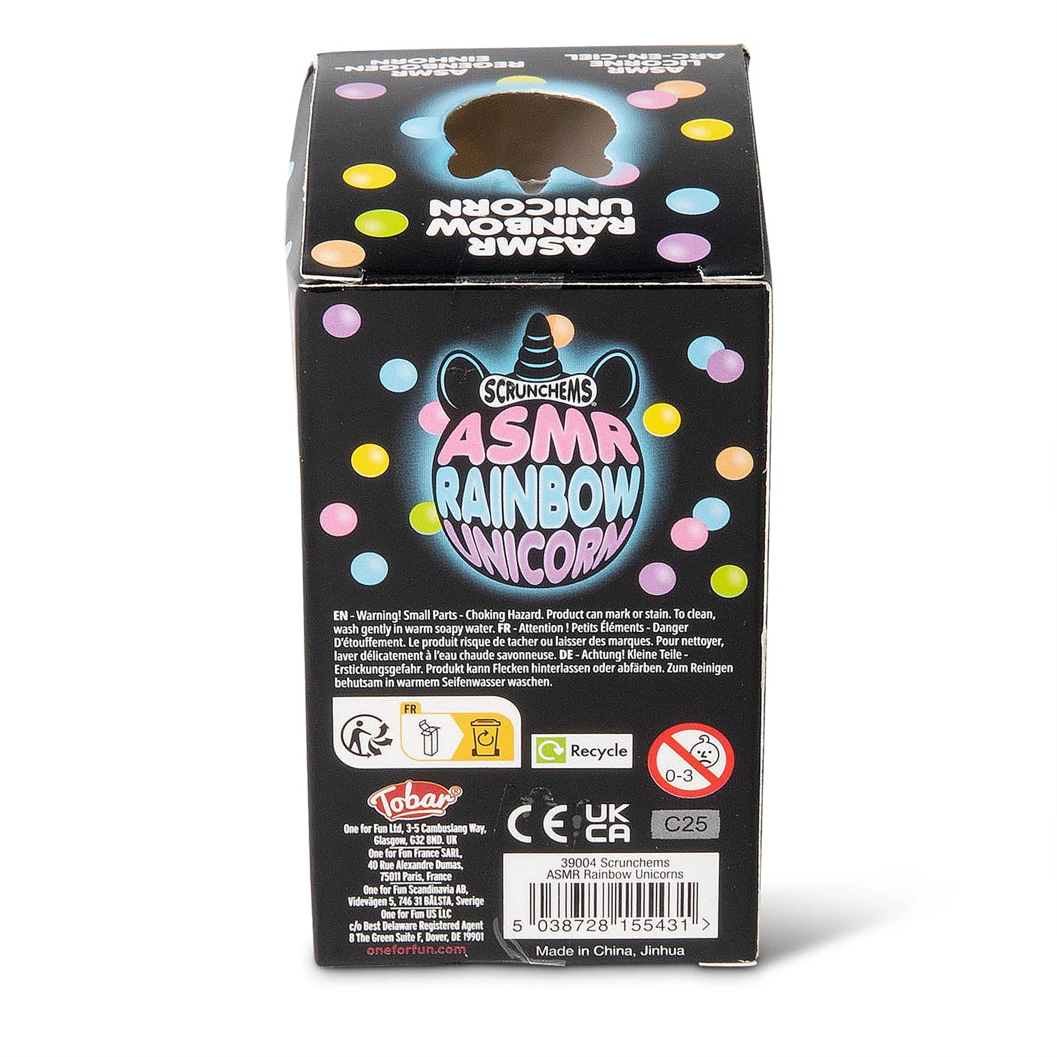 Meet the magical Scrunchems ASMR Rainbow Unicorn! Filled with vibrant rainbow beads, it delivers a satisfying squish, mesmerizing texture, and soothing sounds—perfect for stress relief and playful fun.