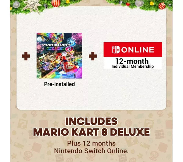 Nintendo Switch OLED Bundle with Mario Kart 8 Deluxe & FREE 12-Month Online Membership