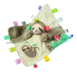 Tags that babies love to explore. Taggies Molasses Sloth character blanket is a soft, huggable toy on top of an attached blanket that gives baby a lot to grab onto. Features a sweet-faced sloth attached to a 13 x 13-inch blanket made of super soft fabric with a satin lining, and adorned with interactive tags. Taggies was born when a mom noticed her child's fascination with satin tags, and blossomed into a world of treasured products. Exploring Taggies textured tags can provide tactile stimulation that babies crave for development and have an amazing calming effect on little ones. Taggies Signature Collection is recognized as the premium line of wonderfully soft and soothing Taggies toys made by Mary Meyer.