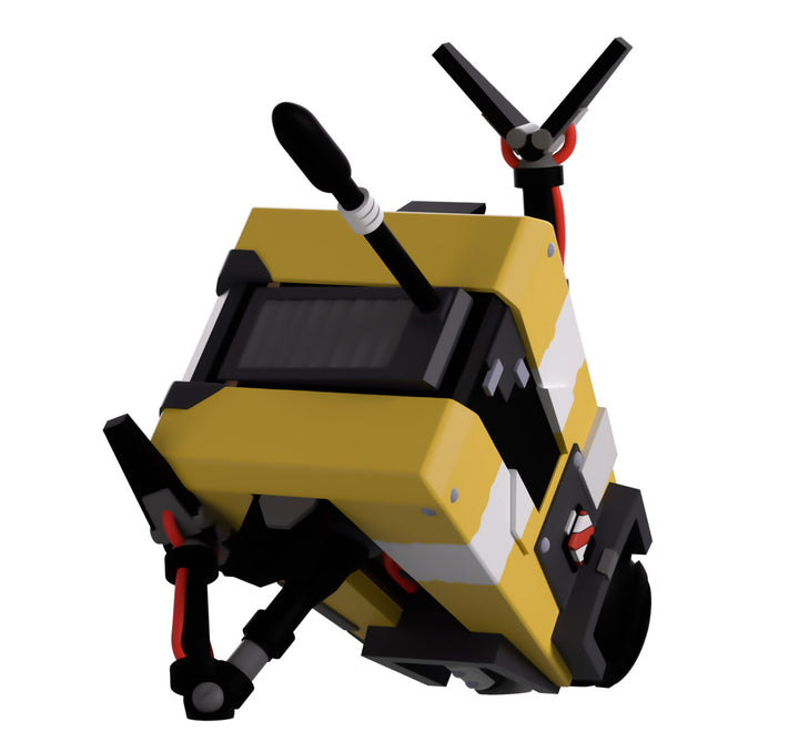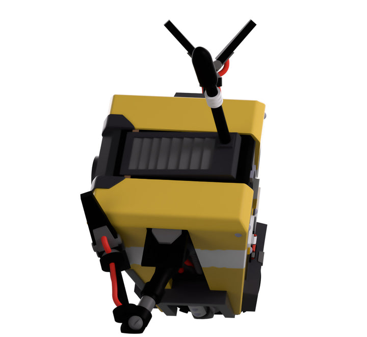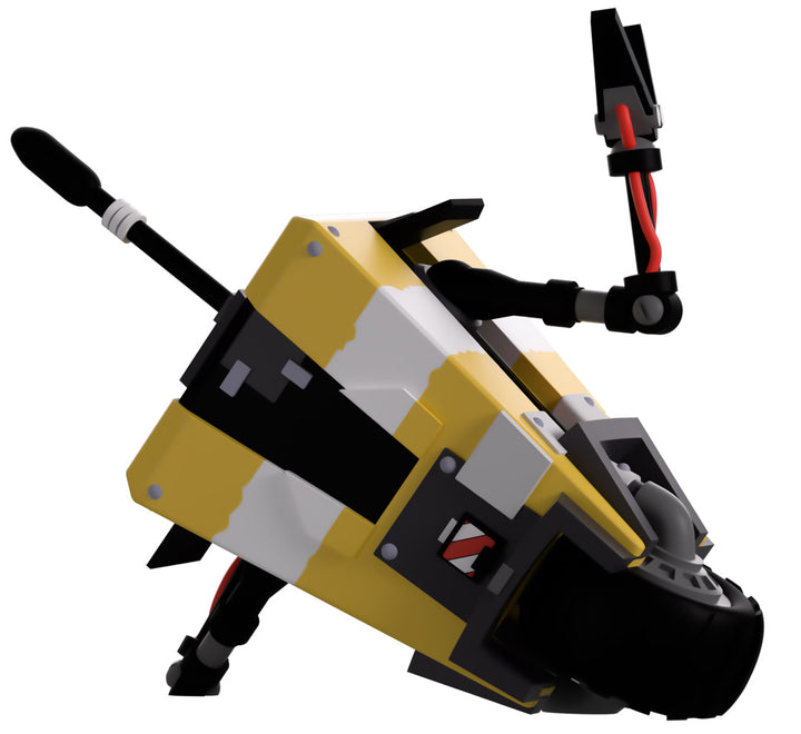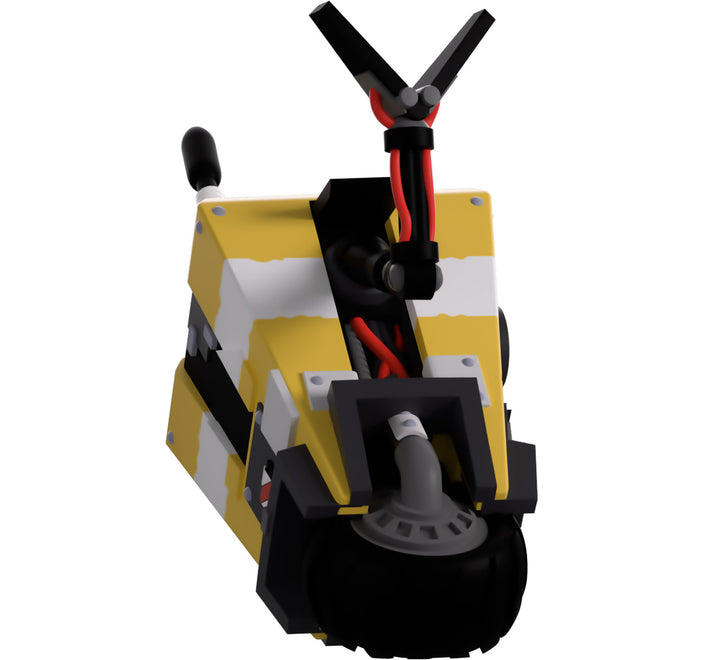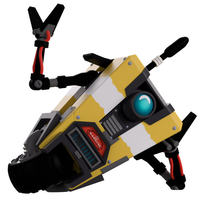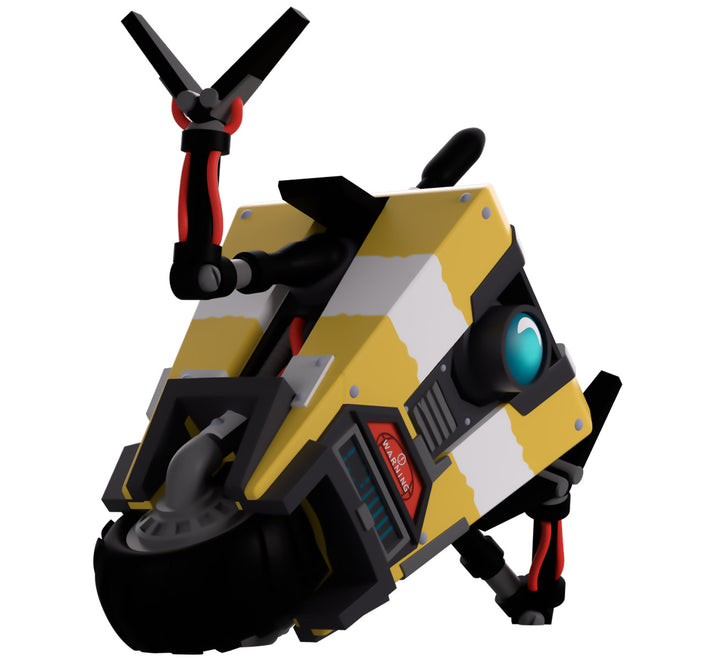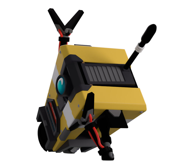 Clatptrap returns to Youtooz to just… well chill really! Laying at 3.5 inches tall with a clamped hand raised as he gives you a wave, the other props up his yellow head as his angular body leads down to a singular black wheel. With a thin computer screen and vent resting under a glowing blue eye and a stripe of white across his middle, a long antenna reaches out from his head. The exterior of his packaging sees him in front of a smear of orange and purple, while the interior is a dark grey patterned with the repeating vault logo. The protective packaging shows Claptrap posed in front of a splattered vault logo over a yellow and grey background as his figure can be seen through the large clear window at its front. This collectible was designed in collaboration with @therealracckun and ships in a matte, embossed, protective outer sleeve and a custom sized plastic protector for maximum protection during shipping.