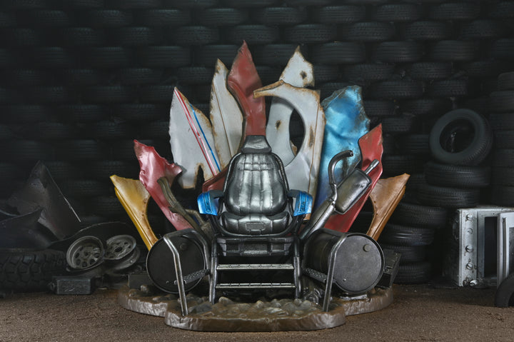 NECA is proud to present the centerpiece to any TMNT fan’s collection: Shredder’s Throne! This epic scrap metal throne didn't appear in the final cut of the 1991 film but was featured on a single collector’s card. Compatible with most of NECA’s TMNT movie action figures (sold separately), Shredder’s Throne features authentic movie detailing and removable oil drums for customizable display. The throne was designed by Freddie Williams II and includes his artwork on the packaging! Measures approximately 9" x 9" x 10.5".