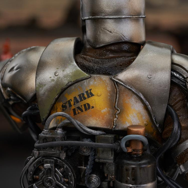 A Diamond Select Toys release! Witness the birth of Iron Man! The newest movie-based Marvel mini-bust is none other than the Invincible Iron Man himself in his very first big-screen appearance! Wearing the handmade suit of armor he used to escape his captors, Tony Stark fires a burst of flame as he makes his getaway. Standing approximately 7" tall, this 1/6 scale mini-bust is limited to only 3,000 pieces and comes packaged with a numbered certificate of authenticity in a full-color window box. Designed by Nelson X. Asencio, sculpted by Juan Ramos!