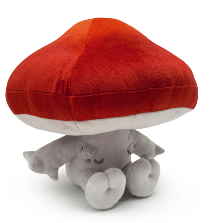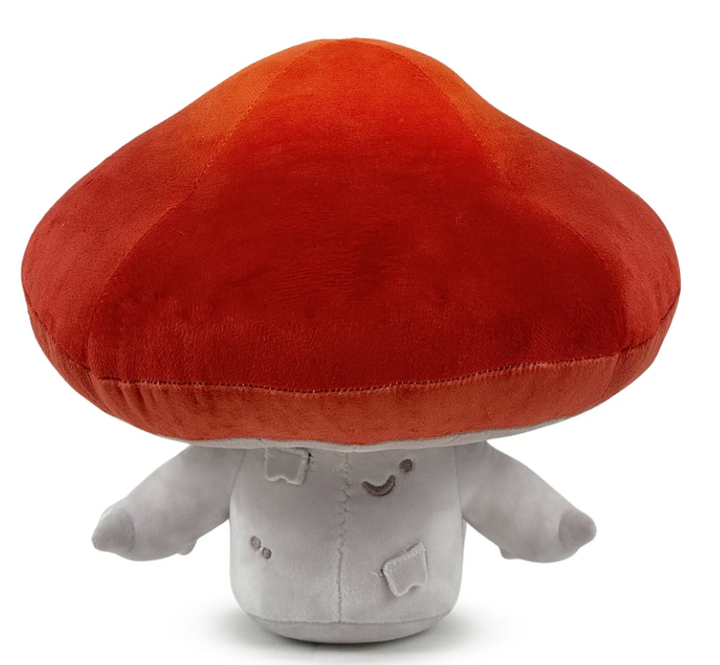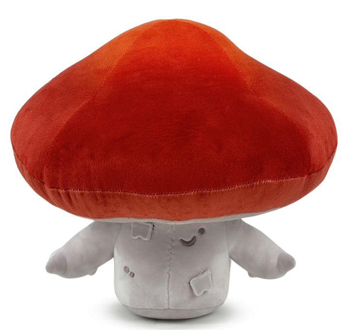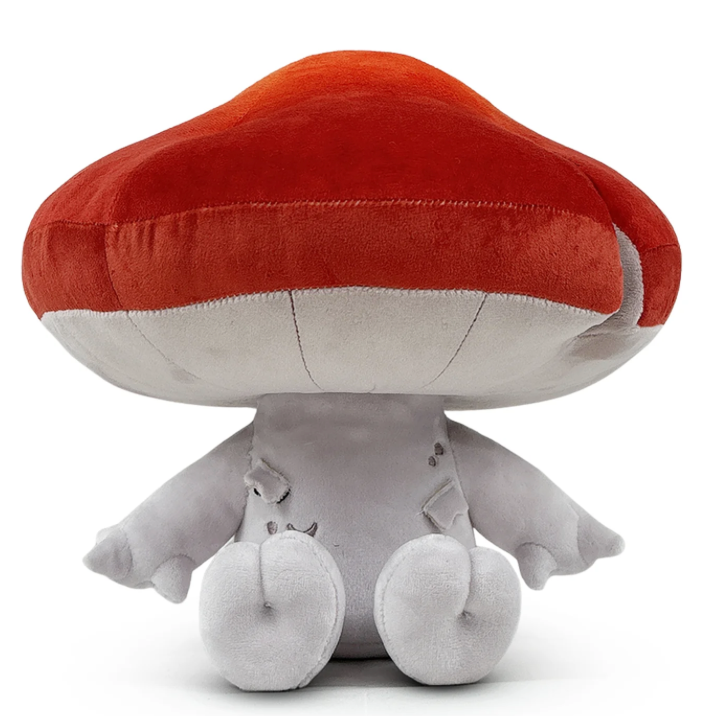 Aww look how cute he is! Wait, why are there so many of them? WHAT ARE THEY DOING?! RUN!! Sitting at 9 inches tall with a deep red cap that has a small notch sliced out of its rim sitting atop their light grey stem of a body, short legs stick forward as their arms reach out to either side with a trio of pointed fingers on each hand. This plush is packed to the seams with 100% PP cotton and is made of the softest minky material absolutely perfect for cuddling or sparing with!