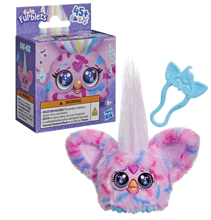 Explore a variety of over 45 fun sound effects and music with this mini electronic toy plush. It's a talking toy that only speaks the unique language called Furbish (they don't speak human languages). Clip Cay-Kee to a backpack or other travel bag with the keychain clip to bring the Furblets party anywhere you go. From stuffed animal toys, to Easter basket toys, to stocking stuffers, this little friend (or "noo-lah" in Furbish) can't wait for a lunch date with their bestie!