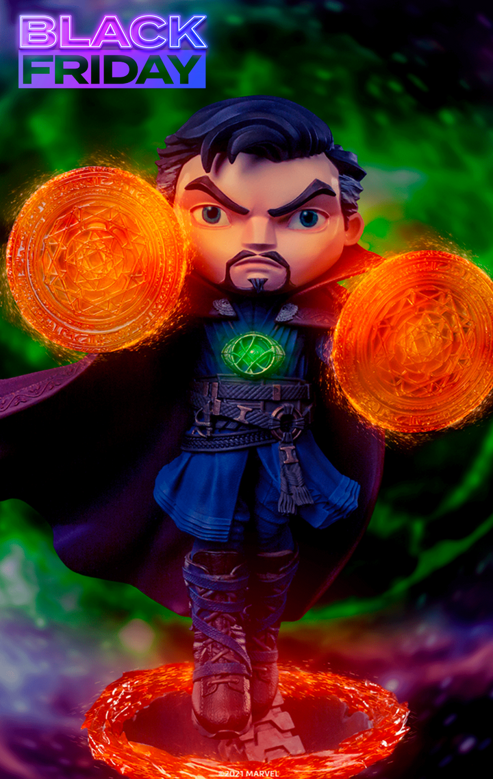 With his eyes focused as much as his greatest power artifact, the Eye of Agamotto, and ready to take on Thanos and his evil plans, Doctor Strange is another of Marvel`s great heroes who gets his stylized representation in Iron Studios` MiniCo line!