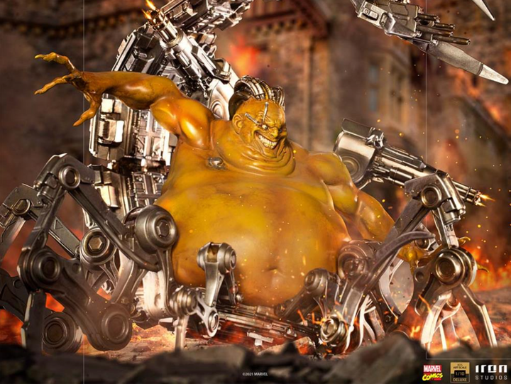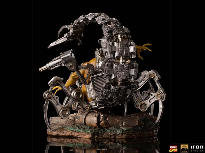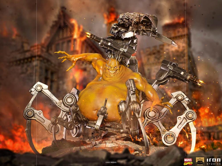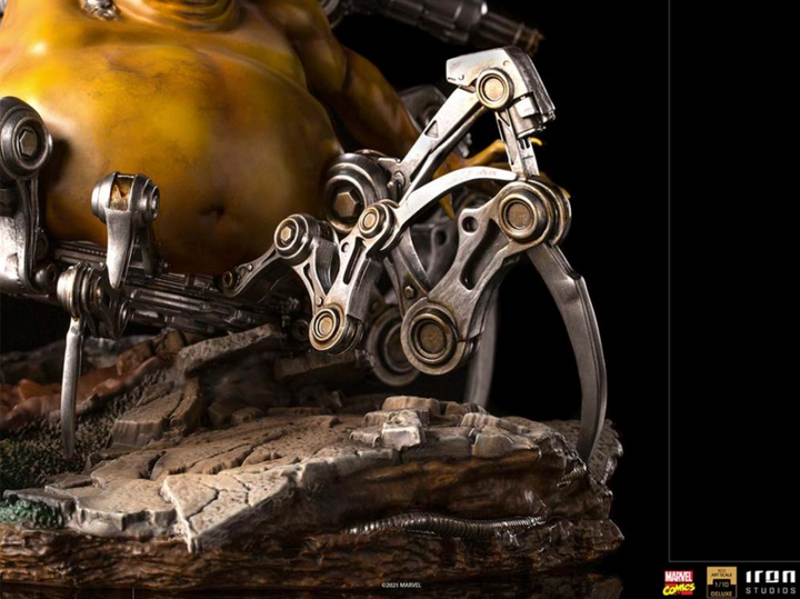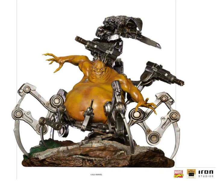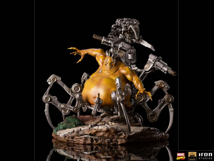 As if he`s come straight out of a nightmare, a burly, misshapen, yellow-skinned being moves like an arachnid. Moved by mechanical paws that come out of a motorized platform to transport his obese body, and supported by a metallic tail, in place of his spine, just like a scorpion, as the tip of his tail releases deadly resources, with claws and particle beam weapons. A fearsome interdimensional sorcerer, master of manipulation and machinist of his universe, he advances, atop a base that resembles the gardens of Mansion X, along with other mutant super-villains, in a diorama setting, alongside Magneto and Robots Sentinels versus the X-Men. For fans and collectors, from the dimension that adds his name, Iron Studios proudly presents its statue "Mojo - X-Men - BDS Art Scale 1/10".