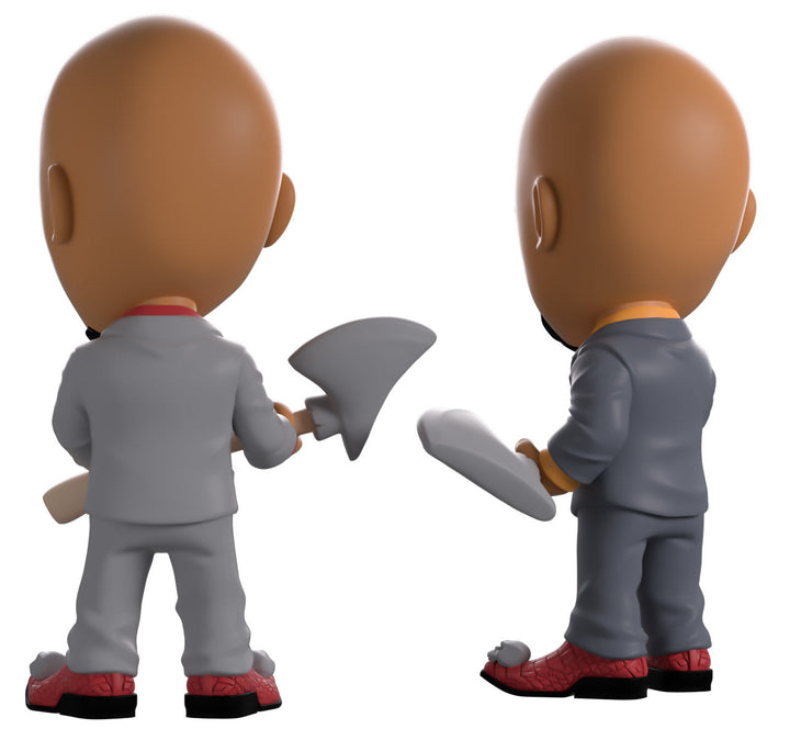 You better watch out the Salamanca Cousins are here and they aren't messing around. Inseparable and perfect for a double pack, the pair stand at 4.8 inches tall wearing matching grey suits and red reptile skin boots along with red or yellow shirt. With serious scowls crossing their faces and smooth bald heads, they each hold an axe in their hands, ready to swing. The exterior of their packaging has been designed to showcase a bloody scene from a parking lot, while the interior is covered in blood splatter. The protective sleeve is then a close up of the parking lot cement as their figures can be seen through the large clear window at its front. This collectible ships in a matte, embossed, protective outer sleeve and a custom-sized plastic protector for maximum protection during shipping.