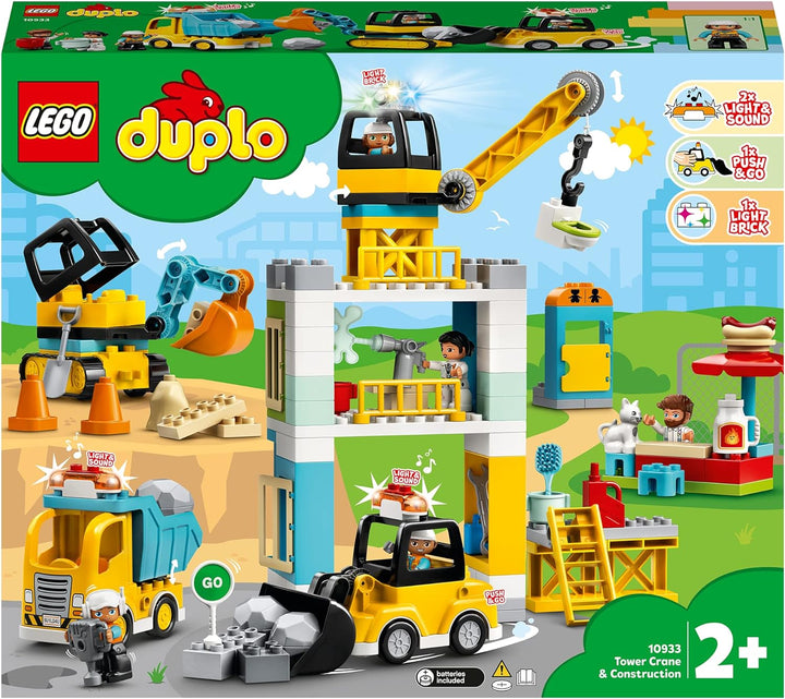 The LEGO® DUPLO® Construction Tower Crane & Construction (10933) preschool playset is filled with vehicles, activities and characters to inspire role-play and develop skills.