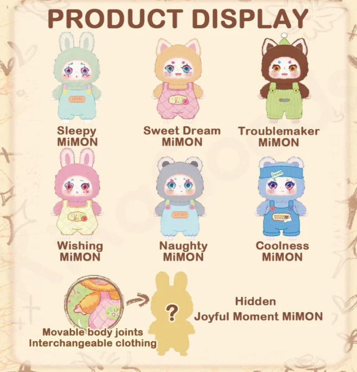 Escape into the wild with the Kimmon Plush Doll from the "Mimon" series, where the charm of nature meets whimsical creativity. Designed by the renowned Kimmon brand, these plush dolls are inspired by the mystical beauty of the wildernessfeaturing characters that embody the spirit of the forest, animals, and the magic of untamed landscapes. Each doll is exquisitely crafted with soft, premium materials and detailed with natural elements like leaves, flowers, and animal prints, bringing the dreamlike essence of the wild to life.