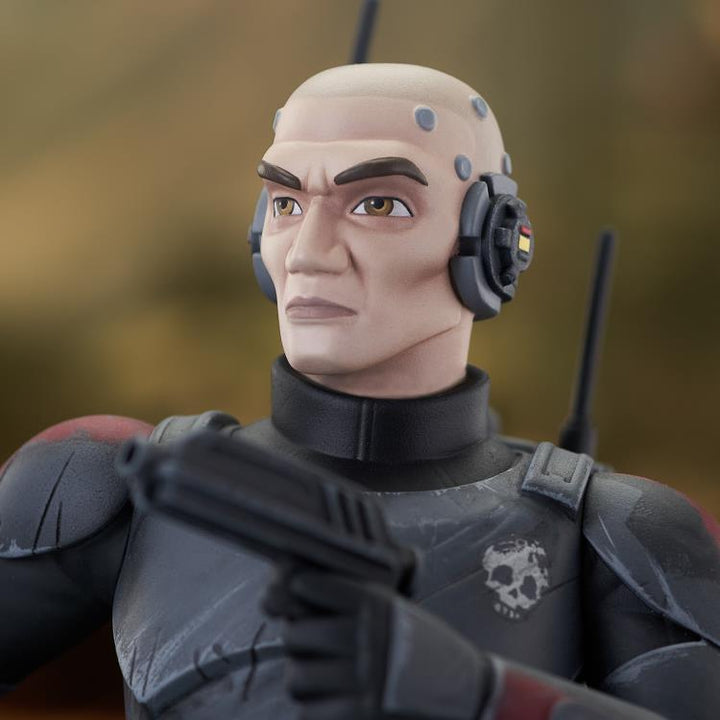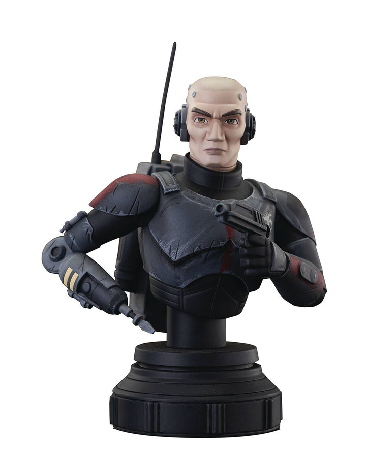A Gentle Giant LTD release! The Bad Batch gets another member! Based on his appearance in the Clone Wars, this 1/7 scale, 6-inch mini-bust of Echo joins his teammates Wrecker and Hunter in the Gentle Giant LTD animated-style mini-bust collection. With blaster in hand, this bust is based on his animated appearance, and is limited to only 2,000 pieces. It comes packaged with a numbered certificate of authenticity in a numbered, full-color window box.