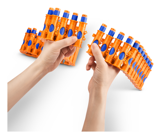 • Belt Fed Blaster: The Motorized Rage Fire has a 40 dart capacity belt that feeds into, and automatically rotates through, the blaster.