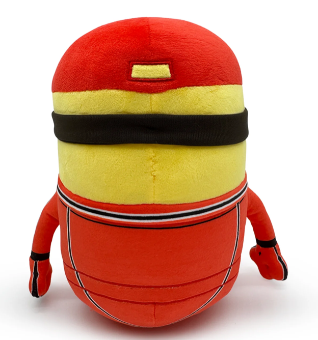 Sitting at 9 inches tall and wearing an orange racing suit with black and white stripe detailing along the arms and and neck as decal pattern the front, above this minion's smiling face he wears an orange hat with a checkerboard detail under the brim! This plush is packed to the seams with 100% PP cotton and is made of the normal and sublimated minky materials, perfect for cuddling or racing with!