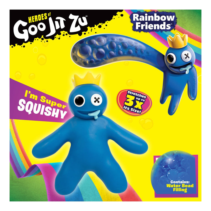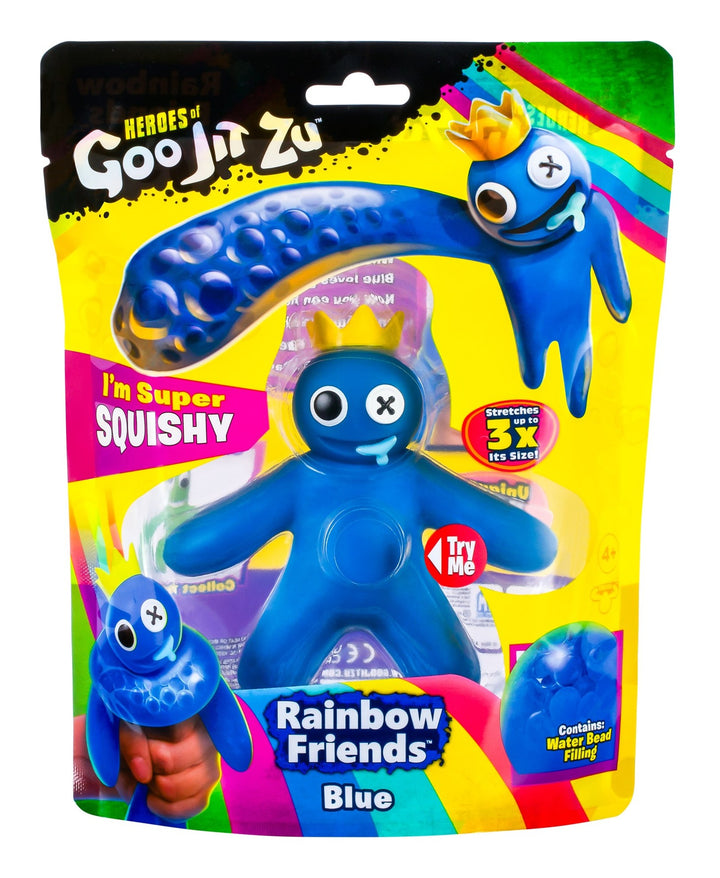 Rainbow Friends, the multiplayer, kid-friendly horror story experience have now joined with the Heroes of Goo Jit Zu to become super squishy, stretchy action figure toys! They have unique goo fillings! Blue is super squishy. Kids can stretch and squeeze his unique squishy, water-bead filled body and see something fantastic happen! Boys and girls can stretch both Blue and Green up to three times their size. Best thing is they will always come back to their original shape! Heroes of Goo Jit Zu Rainbow Friends are a gooey way for kids to play with no mess. Fans can collect both Blue and Green 4.2-Inch character figures.