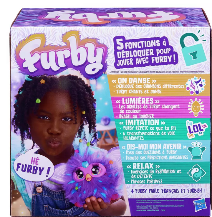 Meet Furby! This curious little creature is an incredibly interactive toy friend with 5 voice activated modes and over 600 phrases, jokes, songs, and so much more to discover. Tell Furby what you want to do with these 5 commands: Dance Party, Copy Cat, Tell My Fortune, Let's Chill, and Lightshow.