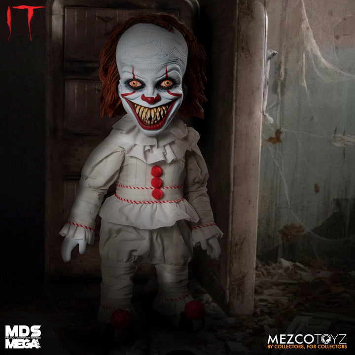 The MDS Mega Scale IT: Talking Sinister Pennywise features an all-new head sculpt of the shape-shifting clown sporting a grimacing smile from ear-to-ear. If that’s not enough to fuel your nightmares, he also says 6 of his most famous phrases from the film including “tasty, tasty, beautiful fear!""
