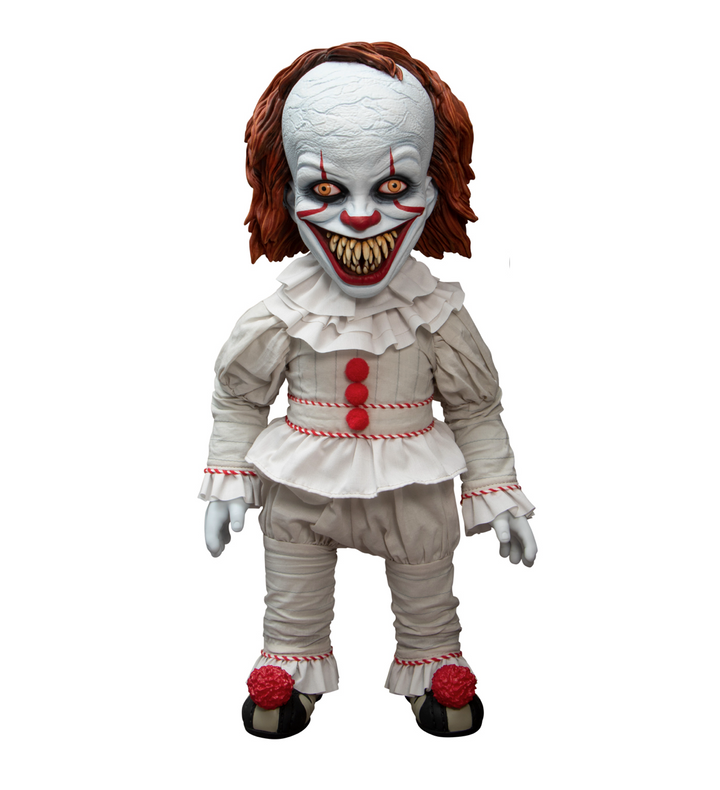 Presented in a clown costume with ruffle detailing, Pennywise stands at a foreboding 15” tall and features 11 points of articulation.