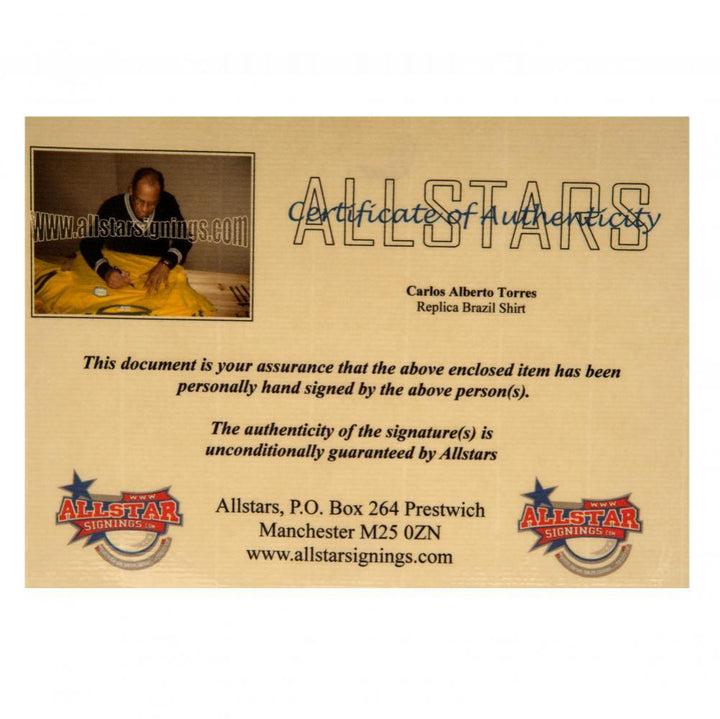 Hand signed on the front by Carlos Alberto