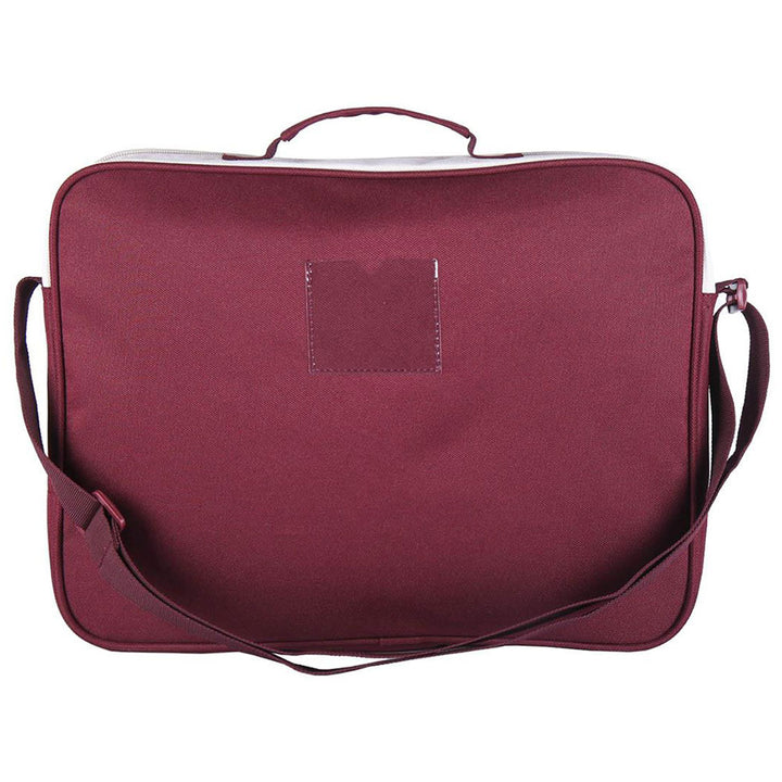 Claret, grey messenger bag featuring the Gryffindor logo and text