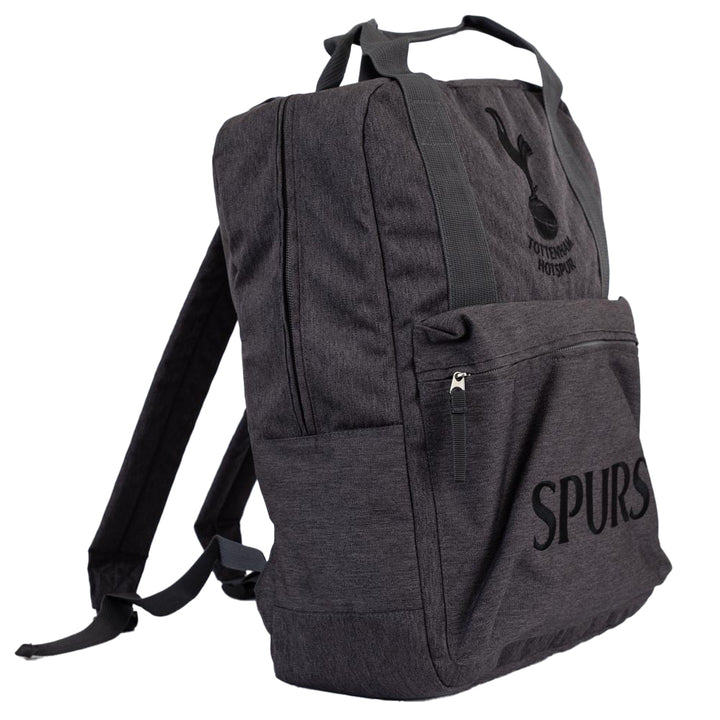Stylish grey backpack featuring an embroidered Tottenham Hotspurs FC crest and the text SPURS in black on the front pocket