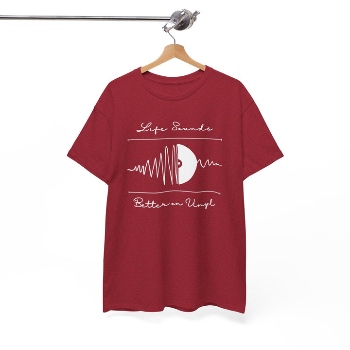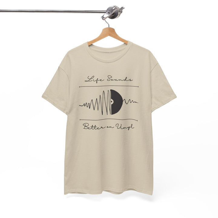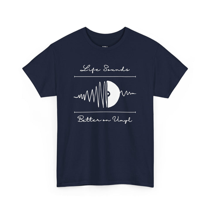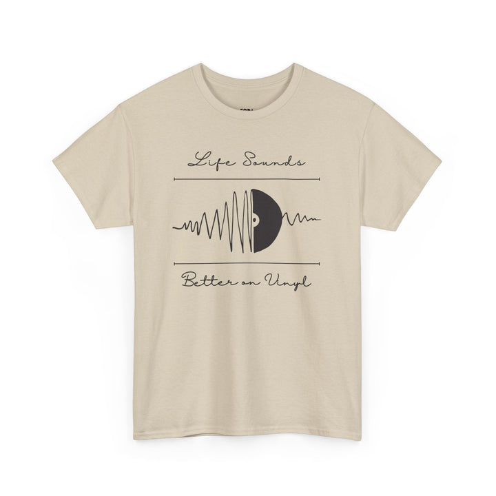 Life sounds better on vinyl! Show your love for vinyl records with this fun and comfy tee. The classic fit makes it perfect for music enthusiasts and fans of retro style. Ideal for casual wear or music events, this tee is durable and suitable for everyday wear or concerts.
