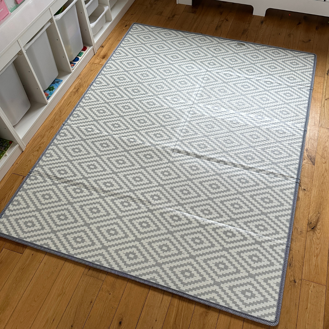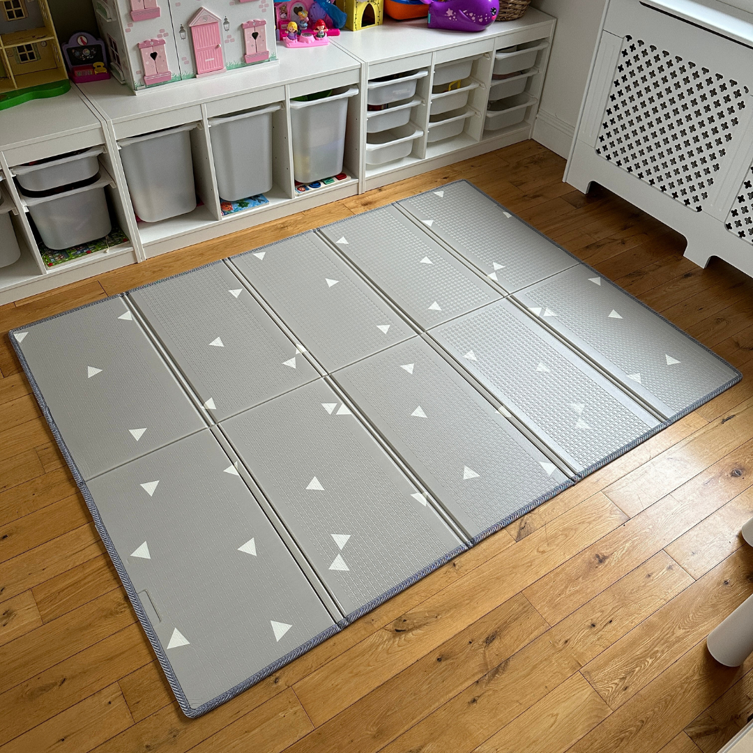 • Extra Large Baby Floor Mat - Large play mat can accommodate a family to enjoy happy moments together. Baby mats for floor play offer a soft, comfy spot for your little one to relax, play and work on their developing skills. Lightweight design, can be folded into a compact size, easy to store as it comes with a handy storage bag .