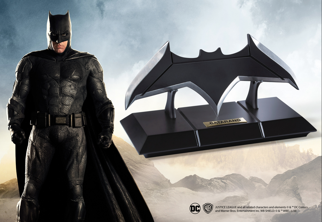An accurately crafted prop replica of the Batarang as used by Bruce Wayne in Justice League (2017).