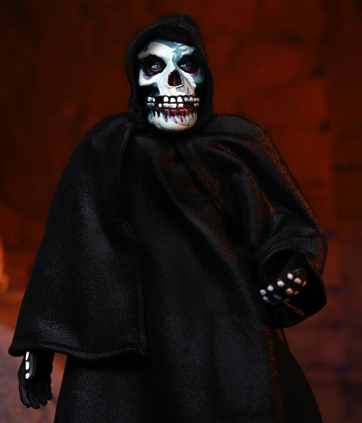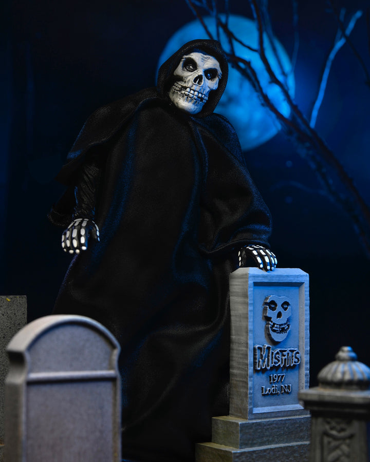 Too much horror business? Never! The Misfits are one of the most recognized punk bands ever, and NECA is giving their mascot the Ultimate action figure treatment! This 7" action figure of The Fiend™ is dressed in flowing black robes and comes complete with interchangeable hands, daggers, records, and candelabra accessories. The figure features three interchangeable heads, including one that recreates the highly stylized version rendered in artwork painted by the late, great Basil Gogos.
