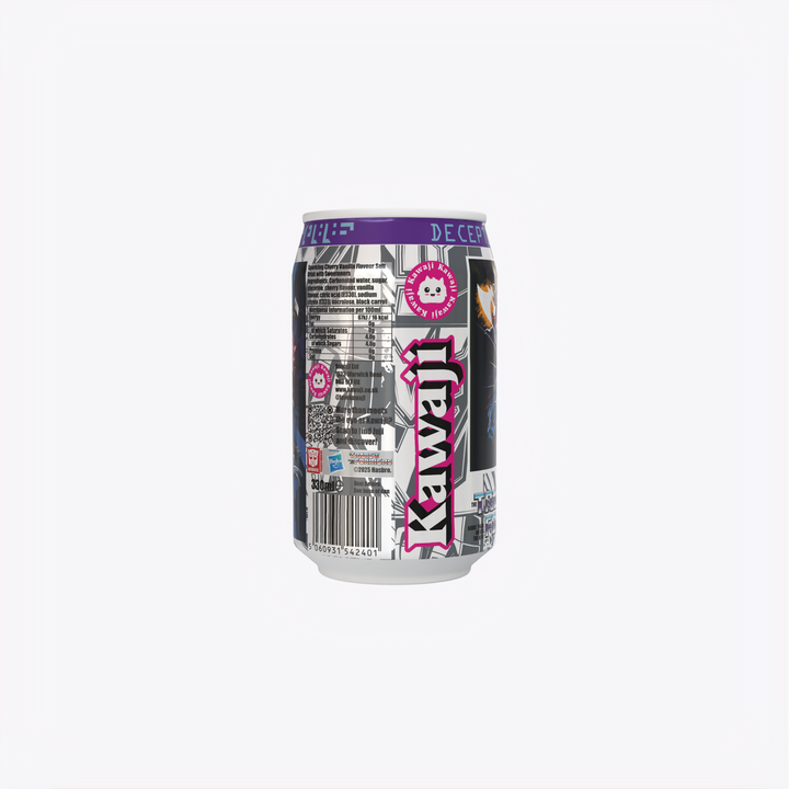 Embrace the chilling darkness and ultimate ambition with Kawaji Decepticherry Soda, the commanding Cherry Vanilla flavour inspired by the cold, tactical leader of the Decepticons: Megatron!