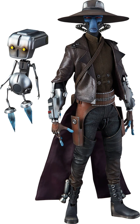 The Cad Bane Sixth Scale Figure captures the cruel and calculating bounty hunter’s distinct design from the fan-favorite Clone Wars animated series. This articulated figure features his distinct Duros™ alien portrait with attached breathing tubes and a removable wide-brimmed hat. His blue complexion is stern and scarred, with piercing red eyes and a slight snarl at his lips. Cad Bane’s costume is meticulously tailored with fabric and faux leather elements to recreate his jacket, undershirt, holsters, pants, and boot covers.