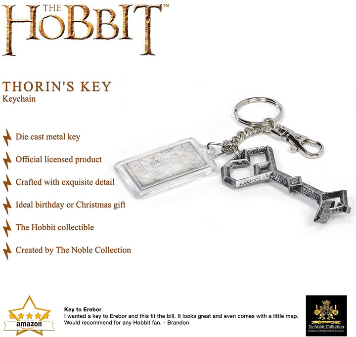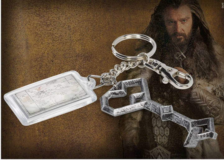 Thorin Oakenshield’s key is recreated as a metal keychain, and also features a fob that bears the map entrusted to Bilbo in his journey there and back again.