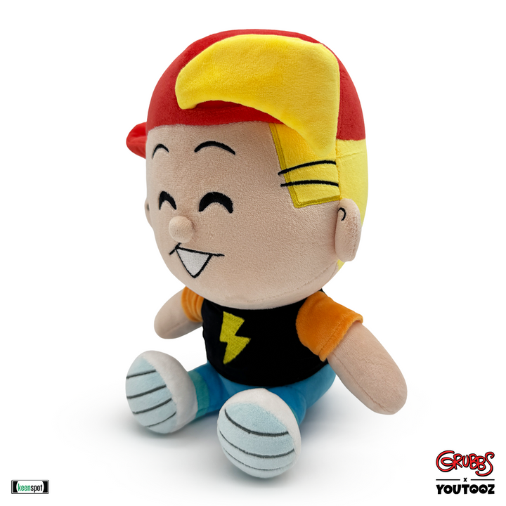 Grubbs lands at Youtooz to cause some trouble with his plush debut! Sitting at 9 inches tall with a cheeky smile crossing his face as a long blonde fringe sticks out from the hole in his backwards facing red cap, you just know he’s planning something mischievous! Wearing a black shirt with orange sleeves and a lightning bolt on the chest, his blue pants lead into white and blue sneakers which are kicked forward. This plush is packed to the seams with 100% PP cotton and is made of the softest minky material, absolutely perfect for cuddling or tormenting your siblings with!