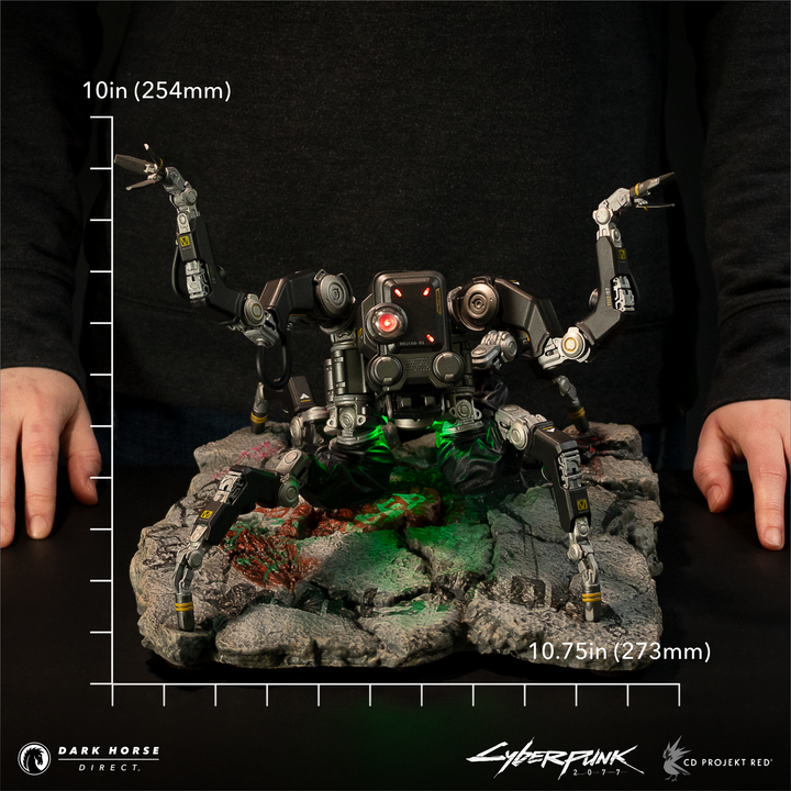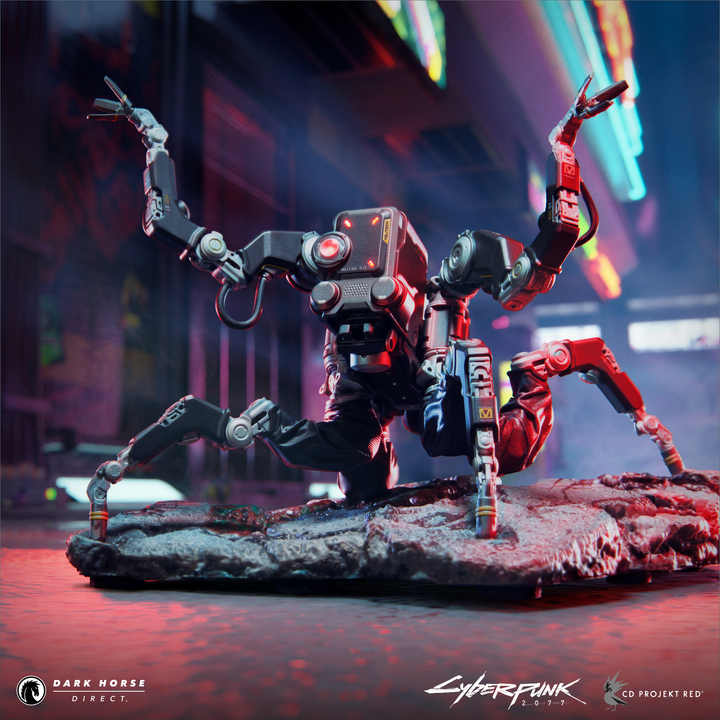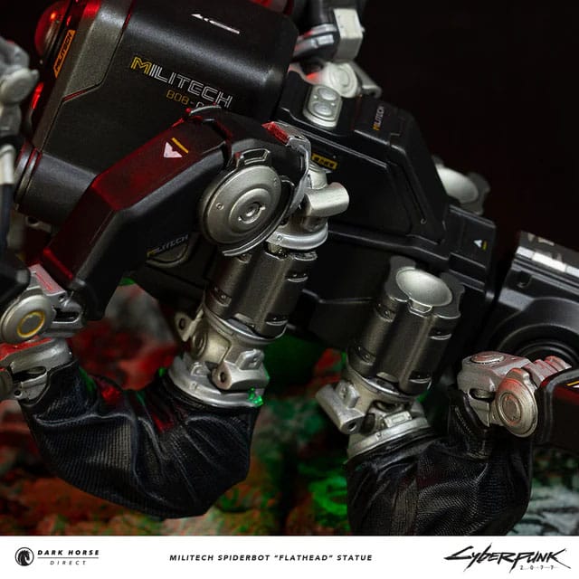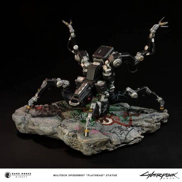 Dark Horse Direct and CD Projekt Red are proud to present the Cyberpunk 2077: Militech Spiderbot “Flathead” Statue! Based on the state-of-the-art Militech model MT0D12 “Flathead”, this premier replica statue is at the ready for stealth and recon.