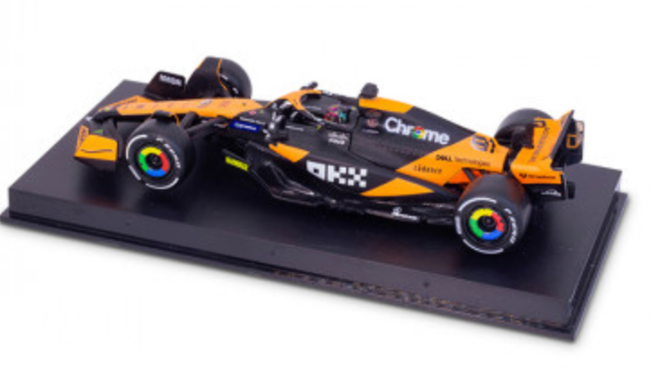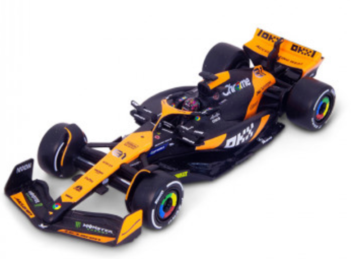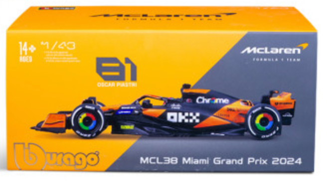 This 1:43 scale McLaren MCL38 model for 2024 features the sleek design of McLaren's latest F1 car, complete with Oscar Piastri's helmet. A perfect collectible for fans of F1, McLaren, and the rising star Piastri, it offers unparalleled attention to detail. With dynamic paintwork and intricate design, this model showcases the innovation and speed McLaren brings to the track each season.
