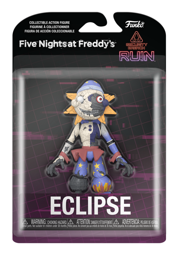 Close in on your favorite Five Nights at Freddy’s™ characters before they move! Catch Action Figure Eclipse from Five Nights at Freddy’s: Security Breach - Ruin in action. Will your collection survive the addition of this Five Night's at Freddy's character? Vinyl figure is approximately 5-inches tall._x000D_