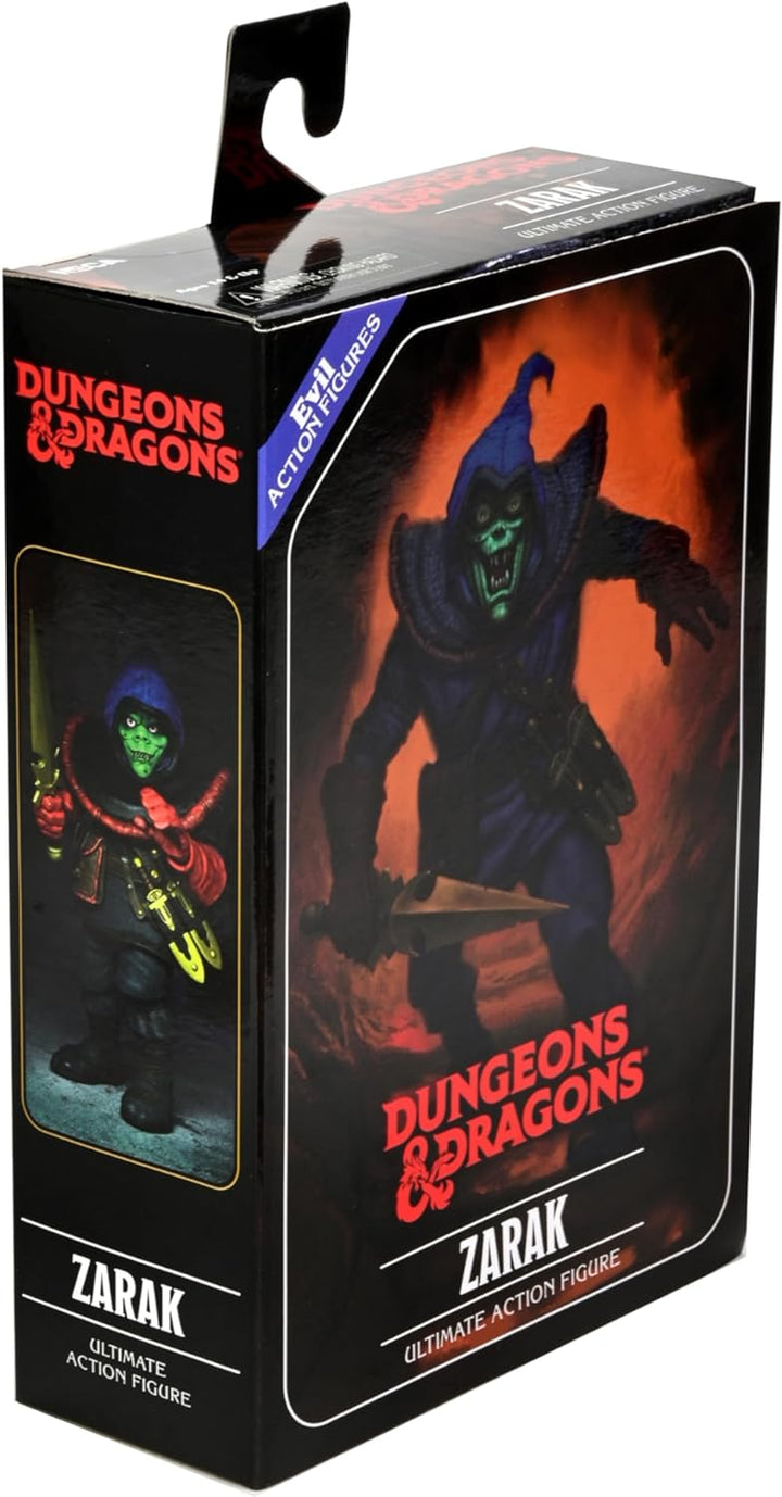 NECA has taken inspiration from the classic Dungeons & Dragons action figure releases and reinterpreted them for the modern collector’s market, taking advantage of all of today’s advances in technology and tooling to create this Ultimate action figure! What evil assassin Zarak lacks in conscience he makes up for in accessories! The figure is packed with an assassin’s tools of trade, including sword, daggers that fit into sheaths on his belt, potion bottle, grappling hook with rope, and interchangeable heads and hands.