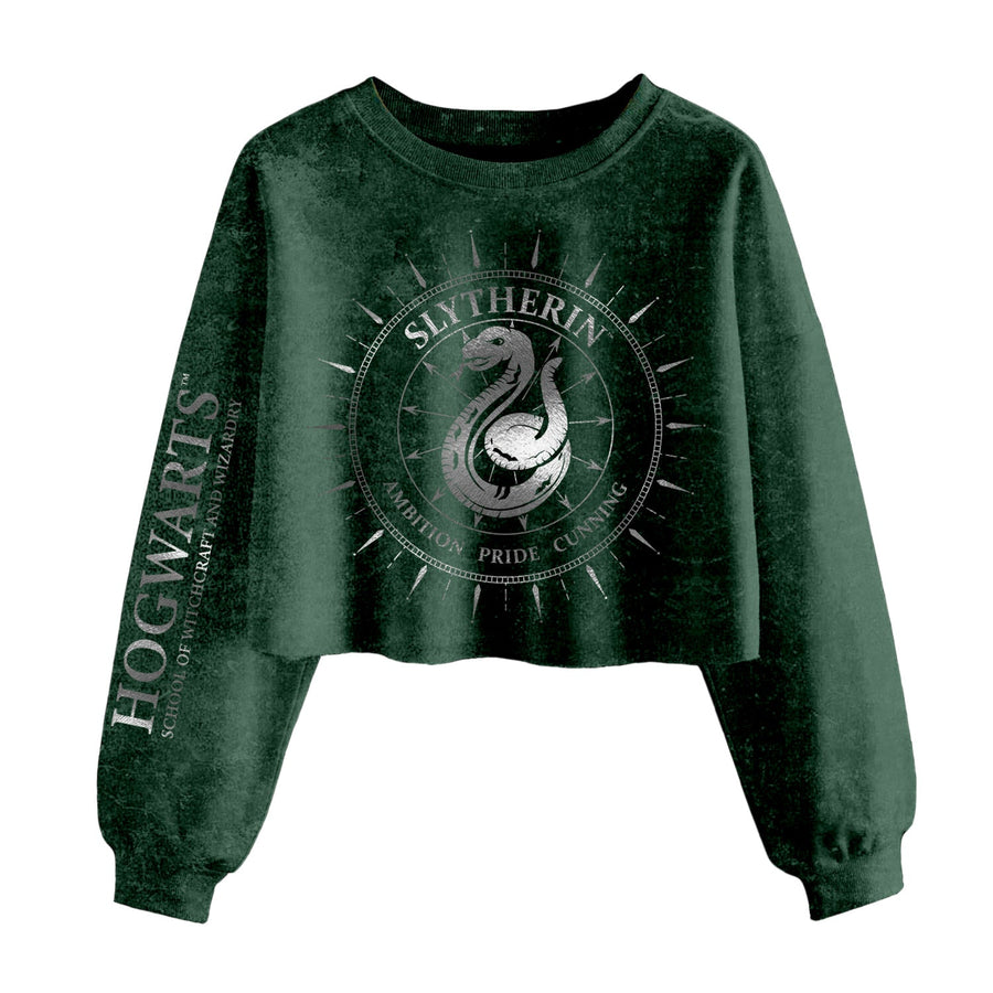 Harry Potter Slytherin Constellations SuperHeroes Inc. Ladies Acid Wash Cropped Sweatshirt