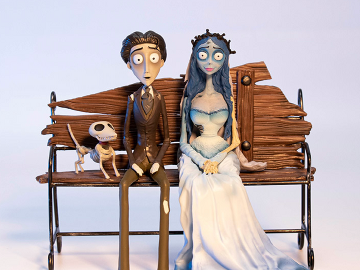 SD is proud to introduce this fantastic figure set of an iconic scene from Tim Burton’s film, The Corpse Bride: Victor Van Dort and Emily sitting on the bench