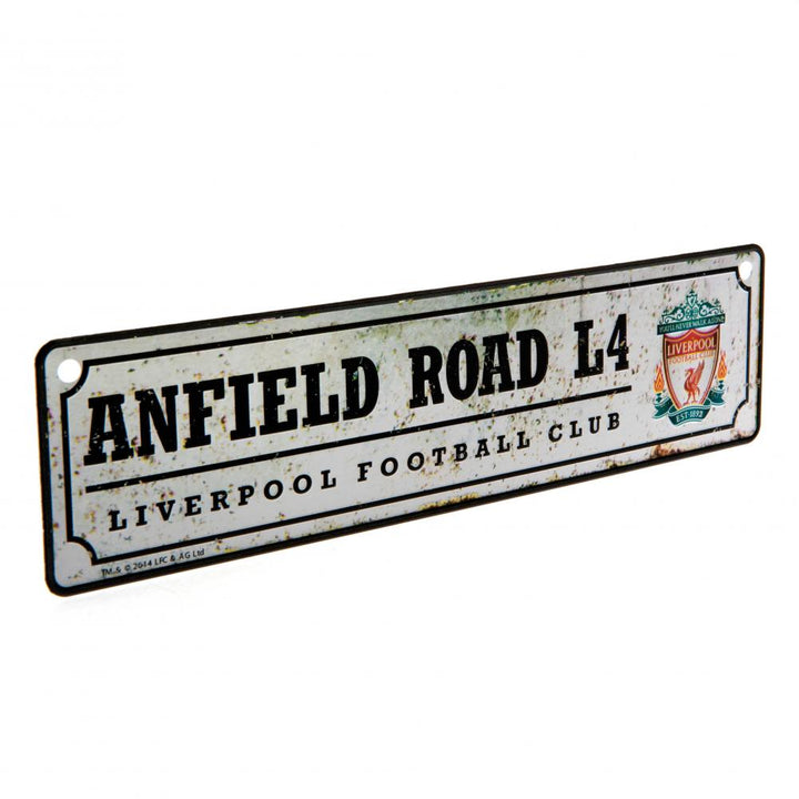 Anfield road sign, the home of Liverpool FC on a rustic look background