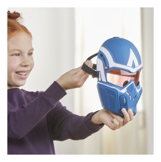 This Marvel Studios Captain America Brave New World Flight Vision Mask is a role play toy kids 5 and up can use to dress up as Sam Wilson! Boys and girls can play as Captain America on his latest mission to save the world against a dangerous new nemesis. Flight Vision Mask features eye lens that can slide up or down and includes a stretchy back strap to comfortably fit most kids 5 and up. This Captain America toy makes a great Marvel gift for any occasion, and can also be a fun accessory for Captain America and super hero Halloween costumes! Look for other exciting action figures, role play toys, and playsets inspired by Marvel Studios Captain America Brave New World.