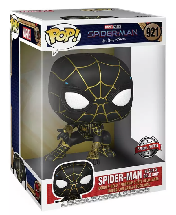 Your Spider-Man: No Way Home collection may not see Peter Parker swing into its ranks in his new black and gold suit. This exclusive, Jumbo Pop! Spider-Man Black and Gold Suit figure will make a sleek addition to any Marvel set. Vinyl bobblehead is approximately 10-inches tall.