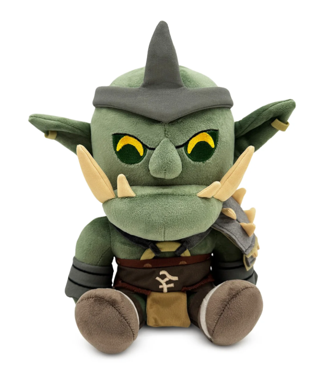 Youtooz has braved the depths of the God Wars Dungeon to bring General Graardor in for his plush debut! Sitting at 9 inches tall with a thick jaw jutting forward and long teeth protruding from the sides, a sinister brow frowns over sunken golden eyes under a pointed headdress. With long pierced ears sticking out from either side of his green head, a spiked pauldron sits over his left shoulder as he is equipped with boots and a Bandos chestplate and tassets that wrap around his wrists, waist and shoulders. This plush is packed to the seams with 100% PP cotton and is made of the softest minky material with accents of felt, absolutely perfect for cuddling or leading the forces of Bandos!