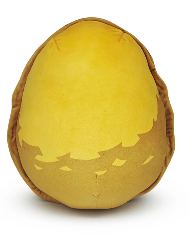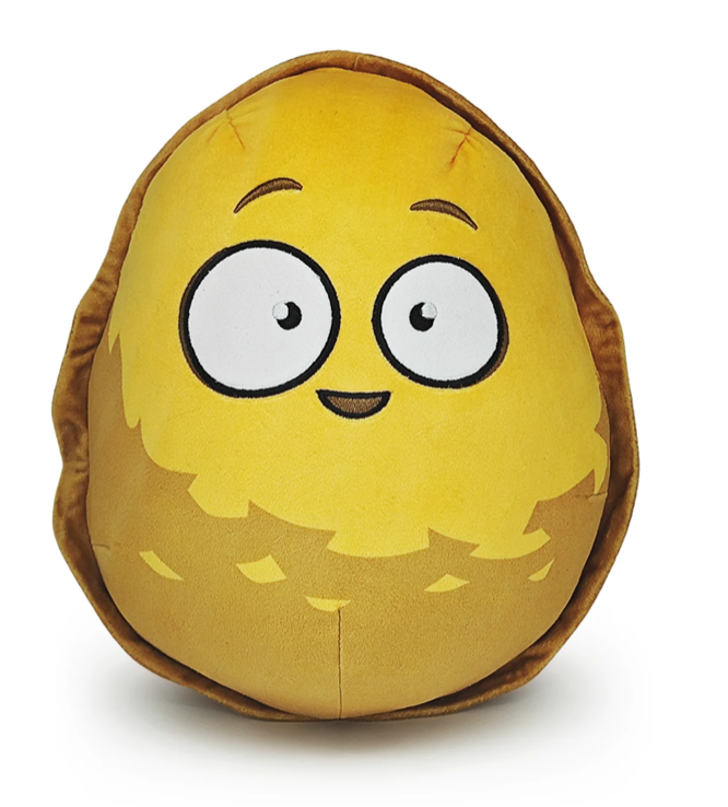 After seeing all the zombies, I think we need to bring in some more defence! Thankfully Wall-Nut is here and is ready to go! Sitting ready at 9 inches tall, this oval-shaped nut is colored a soft ombre from golden to rich brown as two large, slightly shell-shocked, eyes sit above a small open smile. This plush is packed to the seams with 100% PP cotton and is made of the softest minky material, perfect for cuddling or bolstering your defences with!