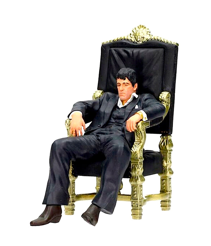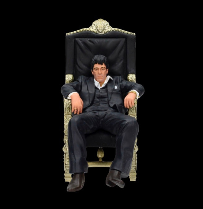 Tony Montana in his chair, based on one of the most recognizable scenes of the movie Scarface.
