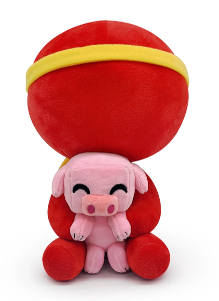 Red is the colour of love! Alan Becker's Red felt left out so they became a 9 inch plush as well. This cutie is sat comfortably on their bum, while they hold a happy pink pig in their hands. Wrapped around their head is a yellow headband, with the extra fabric flowing behind it. This plush is packed to the seams with 100% PP cotton and is made of minky materials, perfect for cuddling a piggy friend with!